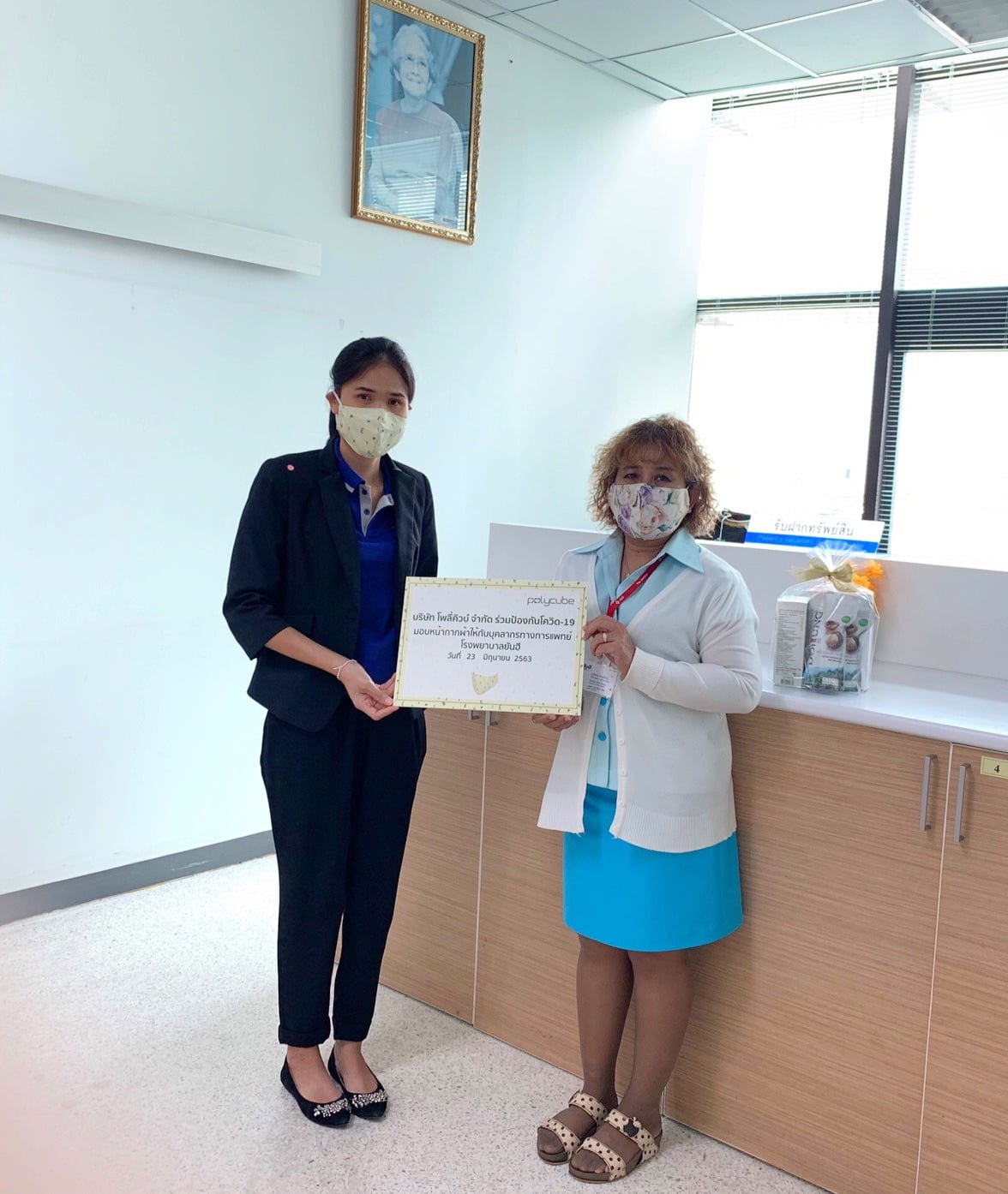บริษัท โพลี่คิวบ์ จำกัด สนับสนุนการป้องกันโควิด-19 โดยมอบหน้ากากผ้าให้บุคลากรทางการแพทย์ในโรงพยาบาลต่าง ๆ.